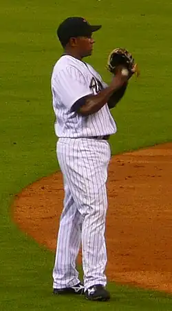 Miguel Odalis Tejada (né Tejeda;[1][2] born May 25, 1974) is a Dominican former professional baseball shortstop who played 16 seasons in Major League Baseball (MLB). He played for six teams, most notably the Oakland Athletics and Baltimore Orioles, before short stints with the Houston Astros, San Diego Padres, San Francisco Giants, and Kansas City Royals. He is currently the manager of the Bravos de León of the Mexican League.