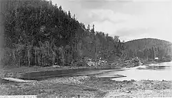 Near the mouth, there is a hamlet named "Miguick" (same toponym as the river). Via Rail train stop there upon request. An important railway bridge is crossing the Miguick river mouth.[3] In the last kilometers of its course, Miguick river follows a very serpentine path.