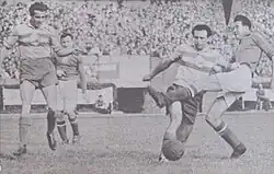 He also played four matches for Romania's national team, making his debut under coach Iuliu Baratky on 20 June 1948 in a 1948 Balkan Cup match that ended with a 3–2 home victory against Bulgaria, but he was sent off in the 74th minute.[8][9][10] His following game was in the same competition, replacing Andrei Mercea in the 77th minute of a 2–1 home victory against Czechoslovakia.[9][11]