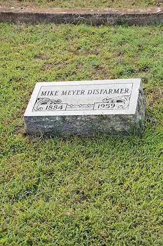 Born Mike Meyer in Indiana, he moved with his family to Arkansas in 1892. He later moved to the town of Heber Springs, Arkansas at the age of thirty, where roughly a decade later he would build and operate his photography studio. Meyer changed his name to Disfarmer while in his 50s, claiming that he was adopted by the Meyers (Disfarmer is a direct reference to Meyer, an archaic German term for farmer).[1] Disfarmer never married, and he lived alone in the photography studio until his death in 1959. While there is speculation that he was eccentric and even insane, so little is known about his personal life that there is no evidence for these assertions other than his photographs.[2]