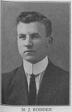 Michael James Rodden (April 24, 1891 – January 11, 1978) was a Canadian sports journalist, National Hockey League referee, and Canadian football coach, and was the first person elected to both the Hockey Hall of Fame (1962) and the Canadian Football Hall of Fame (1964).