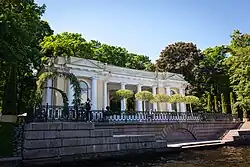 In 1999 the garden was transferred to the Russian Museum, which commissioned an inspection of the state of the grounds.[3] The report in 2000 revealed the extensive damage done to the original design of the ensemble, and a plan was drawn up the following year by the State Institute for Architecture for the restoration of the garden.[4] Work was then carried out between 2002 and 2004, restoring the gardens to the original Rossi designs.[1][2][5] Some of the artworks that had been placed in the garden, such as A. P. Solovyov's "Tree of Freedom", and the bust of Shubin, were removed. A bust of Rossi was placed in the Rossi Pavilion, while busts of Karl Bryullov, and Alexander Ivanov were installed in the grounds of the garden.[3] As restored, the garden preserves the English landscape style in its centre, and the French formal style around its edges.[4] On 10 July 2001 the garden and its ensemble were designated as objects "of historical and cultural heritage of federal significance."[1][8] Since 2008 the garden has hosted the International "Imperial Gardens of Russia" Festival annually in late May and early June. The festival is an exhibition and competition of landscape and garden-park art.[1][9]