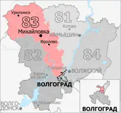 The Mikhaylovka constituency (No.83[a]) is a Russian legislative constituency in Volgograd Oblast. The constituency covers central Volgograd and rural areas to the north-west of the city.