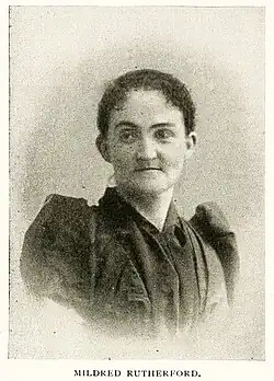 Rutherford entered the Lucy Cobb Institute at the age of eight "in the school's first session".[3] She was graduated from there at the age of sixteen[4] in 1868.[5]