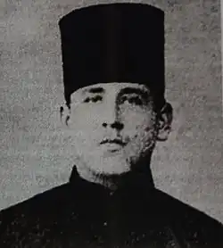Milan Popyordanov was born in Veles, in the Kosovo Vilayet of the Ottoman Empire (present-day North Macedonia) in 1877. His younger brother, Yordan Popyordanov, was one of the Boatmen of Thessaloniki who launched the Thessaloniki bombings of 1903. Mile Popyordanov studied at the Bulgarian men's high school in the town of Bitola and later at the Constantinople Bulgarian Theological Seminary, before becoming an active member of the Internal Macedonian-Adrianople Revolutionary Organization. Afterwards he worked as a Bulgarian teacher in his native area.[5] As an active member of the IMARO, he later joined the regional detachment operating around Radovis. From the end of 1900 Gotse Delchev appointed Milan Popyordanov as leader of that detachment. At the beginning of March 1901 he arrived in Sofia, Bulgaria by his brother. There Popyordanov persuaded the Bulgarian poet Peyo Yavorov to leave for Macedonia as a guerrilla. As a sign of friendship when leaving, Yavorov presented him with his official suit.[6] In September, on his return to Veles, he was ambushed and surrounded by Ottoman soldiers. Then he was engaged in a shootout with them. In order not to be caught alive, he killed himself.[7] Afterwards the Turkish soldiers disfigured his face beyond recognition. He was identified by the suit given to him by Yavorov. There is a folk song about the death of Popyordanov called "Sick layed down Mile Pop Yordanov" (Bulgarian: Болен ми лежи Миле Попйорданов, Macedonian: Болен ми лежи Миле Поп Јорданов'). He is considered a Macedonian by the historians in North Macedonia.[8]