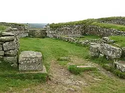 Excavations in 1988-9 showed three periods of the north gate, having been built, blocked, then partly demolished.[1]
