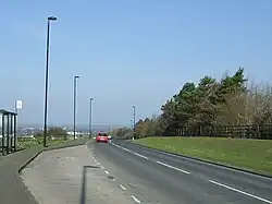 Turret 9B (Walbottle) is also located under a modern road (Hawthorn Terrace) near the west end of St. Cuthbert's Primary School. Although surface remains are now obscured by the road,[13] 19 feet (5.8 m) of Turret 9B's south wall was located in 1928, under a hedge to the north of the road. The precise position is a matter of dispute with the excavation report placing it 545 yards (498 m) east of Milecastle 10 whilst another source gives the distance as 570 yards (520 m),[13] however it was recorded that it was built using the same substantial masonry as Turret 7B, with the door in the same position.[4]