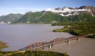 Miles Lake is a 3.5 miles (5.6 km) long glacial lake in the U.S. state of Alaska. It is located in the valley of the Copper River, which pools to create it. The lake includes the terminus of Miles Glacier, 33 miles (53 km) north of Katalla, Chugach Mountains, and flows into the lower Copper River (Alaska).[1]
