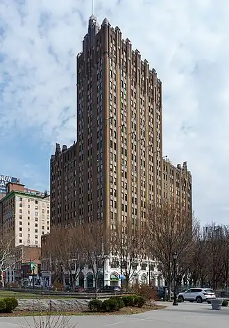 The Military Park Building in Newark, New Jersey is one of the earliest skyscrapers built downtown. Designed by the architectural firm Polhemus & Coffin of New York, it was the tallest building in New Jersey upon its completion in 1926 until being surpassed in 1930 by the Eleven 80.[1][2][3] The landmark takes its name from nearby Military Park. Also nearby are some of the city's most prominent institutions such as Newark Museum, New Jersey Performing Arts Center, Newark Public Library, New Jersey Historical Society and Rutgers University. It is served by the Military Park (NLR station).