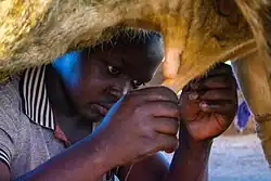 Milking is the act of removing milk from the mammary glands of cattle, water buffalo, humans, goats, sheep, and, more rarely, camels, horses, and donkeys. Milking may be done by hand or by machine, and requires the animal to be currently or recently pregnant. The milker may refer either to the animal that produces the milk or the person who milks said animal.[1]