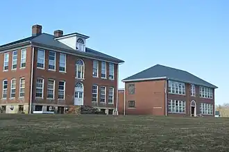 Millboro School, also known as Millboro Elementary School, Millboro High School, and Bath County High School, is a historic school complex located at Millboro, Bath County, Virginia. It was built in three phases. The original two-story, brick school building dates from 1916–1918. The Colonial Revival style building has a standing-seam metal hipped roof, with two tall central chimneys and a central hipped dormer. In 1933, a separate two-story, hipped roof, brick classroom structure with a gymnasium/auditorium wing was constructed to the east of the original building. The two structures were connected in 1962, with the addition of a one-story building. Also on the property is a contributing Home Economics Cottage (1933) and Agricultural Instruction Building (1936). The school closed in 1989.[3]