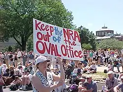 The Million Mom March was a rally held on Mother's Day, May 14, 2000 in the Washington, D.C. National Mall by the Million Mom March organization to call for stricter gun control.[1] The march reportedly drew an estimated attendance of 500,000 to 750,000 people at the D.C. location, however, "The Park Police estimated turnout for that event at 300,000."[2] Including 150,000 to 200,000 people holding satellite events in more than 70 cities across the country, the total number of participants was about one million.[3][4]