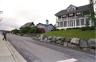 The Mills House, also known as the May Mills House and Rose Hill, is a historic house at 315 Seward Street in Sitka, Alaska. It is a two-story wood-frame structure, designed by Clyde Maclaren of Seattle, Washington for May Mills, the sister of businessman W. P. Mills, and built 1911–13. It is an excellent local example of Colonial Revival design, using the latest technologies of the day and well-adapted to a site offering expansive views of the area. Its internal technology includes an illumination system that could operate either on carbide gas or electricity, and it still has some of its original light fixtures.[2]