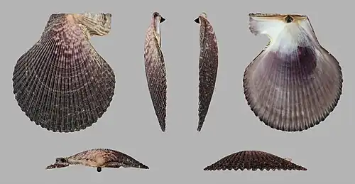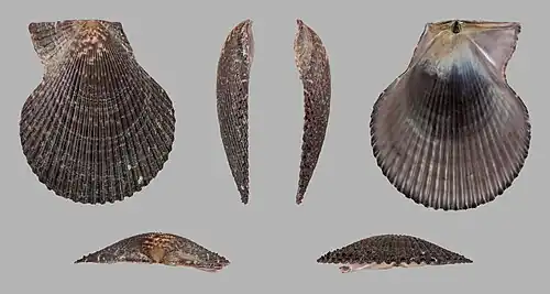 Mimachlamys varia, also known under common names variegated scallop[1][2][3] and black scallop,[4] is a species of small scallop, a marine bivalve mollusk in the family Pectinidae, the scallops. It occurs in the North Sea, the English Channel, the eastern Atlantic Ocean, and the Mediterranean Sea.[1][2][3][5]