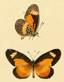 Mimacraea apicalis, the central acraea mimic, is a butterfly in the family Lycaenidae. It is found in Nigeria, Cameroon, Gabon and the Republic of the Congo.[2]