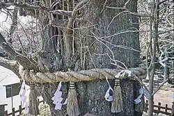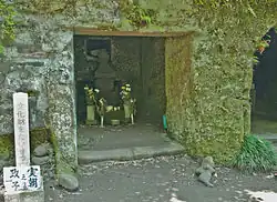 Under heavy snow on the evening of February 13, 1219 (Jōkyū 1, 27th day of the 1st month), Sanetomo was coming down from the Senior Shrine at Tsurugaoka Hachiman-gū after participating in a ceremony celebrating his nomination to Udaijin.[3] His nephew and son of deposed Yoriie, Kugyō, came out from beside the stone stairway of the shrine and assassinated him.[3] For his act, he was himself beheaded a few hours later,[3] thus bringing the Seiwa Genji line of the Minamoto clan and their rule in Kamakura to a sudden end.