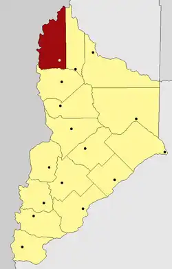 The Department shares borders with Chos Malal Department at the East, Ñorquín Department at the south and Chile at east and northeast.