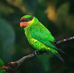 - ^ Collar, Nigel; Kirwan, Guy M.; Boesman, Peter F. D. (2021). "Mindanao Lorikeet (Saudareos johnstoniae),". Birds of the World Online. 1.1. Cornell Lab of Ornithology, Ithaca, NY. doi:10.2173/bow.minlor1.01.1. ISSN 2771-3105.