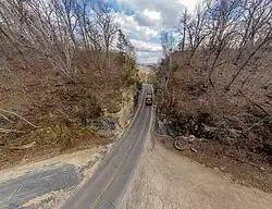 Mindoro Cut is a cut in the Town of Farmington in La Crosse County, Wisconsin,[2] which carries County Trunk Highway C through Phillips Ridge, linking Mindoro with West Salem. The cut is 74 feet (23 m) deep, 86 feet (26 m) long, and 25 feet (7.6 m) wide; it is the second-deepest cut built by hand in the Western Hemisphere and the oldest functional cut which has not been improved upon.[3] Work on the cut began in 1907 and concluded in 1908; the project was completed primarily with hand tools. The Mindoro Cut was added to the National Register of Historic Places in 2007.