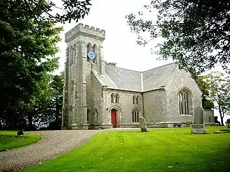 Minto Church, designed in 1831 by William Henry Playfair, is a Gothic revival church with a large three-stage tower. It was built during the ministry of Rev David Aitken who served as minister from 1829 to 1866 and replaced an earlier church. The interior was renovated in 1934, but the exterior remains largely unchanged.[10]