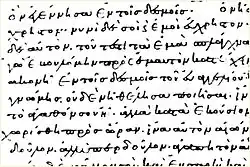 It contains a large number of notes drawn from early church fathers such as Irenaeus, Clement, Origen, Eusebius, and Basil of Caesarea, but none later than Basil (329-379 CE), suggesting a relatively early date for the manuscript from which 1739 was copied.[4] The text of this manuscript often agrees with 𝔓46 and Codex Vaticanus.[4] A colophon indicates that while copying the Pauline epistles, the scribe followed a manuscript that contained text edited by Origen.[5][4]