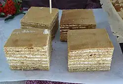 In Polish cuisine, miodownik (Polish: [mjɔˈdɔvɲik] ⓘ, from miód 'honey'; German: Honigkuchen [ˈhoːnɪçˌkuːxn̩] ⓘ) or stefanka is a type of layer cake flavoured with honey, similar to cakes in other Slavic cuisines such as the Russian medovik and Czech medovnik. It is broadly considered a type of piernik, meaning a sweet and/or spiced confectionery good. The recipe for miodownik originates from Galicia (Southeastern Poland) and Central Poland.[1]
