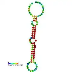 mir-133 is a type of non-coding RNA called a microRNA that was first experimentally characterised in mice.[1] Homologues have since been discovered in several other species including invertebrates such as the fruitfly Drosophila melanogaster. Each species often encodes multiple microRNAs with identical or similar mature sequence. For example, in the human genome there are three known miR-133 genes: miR-133a-1, miR-133a-2 and miR-133b found on chromosomes 18, 20 and 6 respectively. The mature sequence is excised from the 3' arm of the hairpin. miR-133 is expressed in muscle tissue and appears to repress the expression of non-muscle genes.[2]