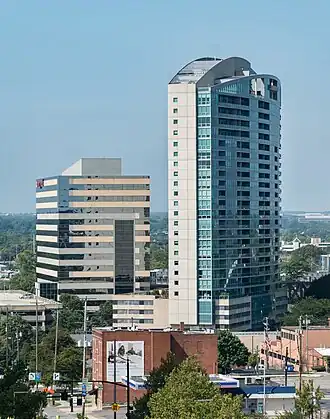 Miranova Place is an office and condominiums complex in Columbus, Ohio. The complex was completed in 2001. It consists of Miranova Condominiums and Miranova Corporate Tower, located at 1 and 2 Miranova Place respectively. Miranova Corporate Tower is 157 ft (48 m) tall and has 12 floors, while Miranova Condominiums is 314 ft (96 m) tall and has 26 floors, making it one of the tallest residential buildings in Ohio. The buildings were designed by the architectural firm Arquitectonica and constructed in the modern architectural style.