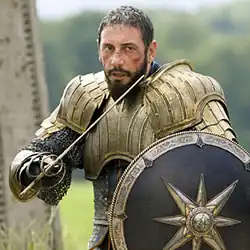 In the 2008 cinematic adaptation, Miraz is portrayed by Sergio Castellitto, an accomplished Italian actor hypothesized by IGN as chosen "to give the Telmarines a Latin-Mediterranean ethnic flavor."[7] The New York Times' review noted that the film's "major source of dramatic energy is the villain, Caspian’s uncle Miraz, who is played with malignant grandeur" by Castellitto.[8] While panning the movie as a whole, movie critic Mick LaSalle found Miraz "square-shouldered and decisive and, by medieval king standards, probably not all that bad. His beard may be too pointy for virtue, but he's hardly evil enough to make it worth yanking the Pevensie siblings out of 1940s England."[9] In an extended critique of the movie, Steven D. Boyer complains that the rivalry between Caspian and Peter is nowhere in the books, but is rather itself a reflection of Miraz' original character.[10]