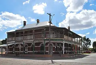 The town's pub was built between 1913 and 1916 and opened in 1917.[6] In recent times, it was narrowly saved when a group of local farmers banded together to buy the licence just before it was sold off to Sydney (Liquor licences can be sold to another concern and then reinstated in a different location).