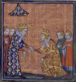 - ^ A "mise" in this context is a settlement by agreement. The use of the word in this sense is very rare in English, and is normally reserved for the Mise of Lewes and the Mise of Amiens from earlier the same year. It is the feminine past participle of the French verb mettre (to put), and is pronounced /ˈmiːz/.[2]