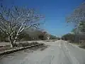 The deteriorated remains of a hacienda a reconstruction are located. The structures have been deteriorating due to the climate of the region and tree branches have grown covering entrances to buildings and abandoned houses.[2]
