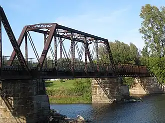The Central Vermont Railway's Richford Branch was built during the 1870s as the Missisquoi Railroad. In June 1984 a derailment damaged a bridge over the Missisquoi River at Sheldon Junction and was not repaired. Limited operations continued on either side of the river, until the western section was abandoned in 1990 and the eastern in 1992.[1]