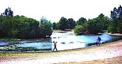 The Seven Islands pond is the largest of all the ponds, created following gravel extraction of the 19th century.[15] The most recent, Bidder's pond, was created in 1990 and named after George Parker Bidder.