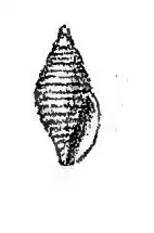 (Original description) The white shell has an elongate-fusiform shape. It contains 5½ slightly convex whorls. The slightly pronounced ribs are crossed by dense, spiral lirae. The ribs on the body whorl are only little elevated. The aperture is oblong. The columella is a little contorted.[2]