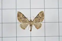 Its wingspan is about 20 mm. Palpi with second joint reaching only just beyond the frontal tuft. Forewings usually with a tuft of raised scales on discocellulars. The body is dark brown, with black irrorations (speckles) and fuscous suffusion. Forewings with oblique, sub-basal, and antemedial lines angled below costa. The medial area blackish, with black cell-speck and edged by oblique black lines, where the outer highly dentate below veins 3 and 2. There is an indistinct waved postmedial line and waved grey sub-marginal line. Patches of fuscous suffusion found on margin below apex and above outer angle. Hindwings with indistinct dark antemedial, medial, postmedial and submarginal lines, becoming obsolescent on costal area, which is pale.[4]