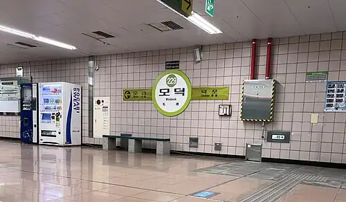 Modeok Station (Korean: 모덕역; Hanja: 毛德驛) is a station on the Busan Metro Line 2 in Deokpo-dong, Sasang District, Busan, South Korea.
