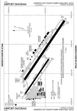Modesto City–County Airport (IATA: MOD, ICAO: KMOD, FAA LID: MOD) (Harry Sham Field) is two miles (3 km) southeast of Modesto in Stanislaus County, California, United States.