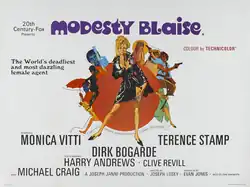 Modesty Blaise is a 1966 British spy comedy film directed by Joseph Losey, produced by Joseph Janni and loosely based on the comic strip of the same name by Peter O'Donnell, who co-wrote the original story upon which Evan Jones and Harold Pinter based their screenplay. It stars Monica Vitti as "Modesty", opposite Terence Stamp as Willie Garvin and Dirk Bogarde as her nemesis Gabriel. The cast also includes Harry Andrews, Clive Revill (in a dual role), Michael Craig, Alexander Knox, Rossella Falk and Tina Aumont. The film's music was composed by Johnny Dankworth and the theme song, "Modesty", sung by pop duo David and Jonathan. It was Vitti's first English-speaking role.[5][6]