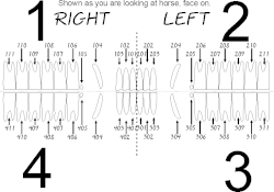 The second and third numbers refer to the location of the tooth from front to back (or rostral to caudal). This starts at 01 and goes up to 11 for many species, depending on the total number of teeth.