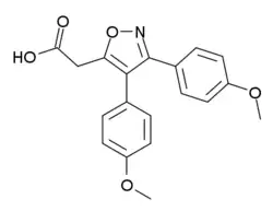 - ^ Cingolani G, Panella A, Perrone MG, Vitale P, Di Mauro G, Fortuna CG, et al. (September 2017). "Structural basis for selective inhibition of Cyclooxygenase-1 (COX-1) by diarylisoxazoles mofezolac and 3-(5-chlorofuran-2-yl)-5-methyl-4-phenylisoxazole (P6)". European Journal of Medicinal Chemistry. 138: 661–668. doi:10.1016/j.ejmech.2017.06.045. PMC 5992922. PMID 28710965.
