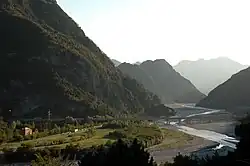 ![]() Bridge across the Fella River with San Gallo Abbey | |