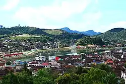 At 1,170 metres (3,840 ft) in elevation, the city has a fairly temperate climate year-round, and is home to Bamar, Shan, Lisu, Palaung, and Karen ethnic groups, as well as Chinese, Indians and Gurkhas. The city is composed of two towns, Mogok and Kyat Pyin. Mogok is four miles long and two miles wide. It is situated in a valley surrounded by a large number of mountains.Taung Min Taung mountain is the highest mountain in the region and is at an elevation of more than 7000 feet. Kyatpyin lies about 7 miles (11 km) southwest of Mogok. Tourists that travel to this area need a special authorization and a guide person.[10]