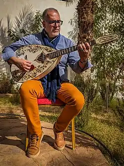 He left Méditerranéo in 2000, starting a solo career.[2] Much of this work is performing instrumentals on his mandole, an effort to increase knowledge of the instrument internationally.[4] His Casbah Jazz records feature his playing lead on a mix of tunes, fusing melodies and rhythms from jazz, chaâbi, tindi (Tuareg music form), andalusian, flamenco, berouali, karkabo and kabyle.[5]