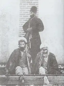 Eight political dissidents were sent to be imprisoned in Qazvin during Sa'd as-Saltaneh's time as the governor of Qazvin. These included prominent figures such as Hajj Sayyah and Mirza Reza Kermani, and lesser-known figures named Hajj Mirza Ahmad Kermani, Mirza Abdollah Hakim, Mirza Heydarali Zarduz, Mirza Farajollah Khan, Mirza Mohammad Ali Khan, and Mirza Nasrollah Khan. Two Bábi men named Molla Ali Akbar Shahmirzadi and Haji Abolhasan were also arrested by Kamran Mirza to make it seem that the prisoners are not political activists concerned with freedom but rather heretical Babis, arrested on religious grounds.[1]: 87–88