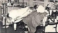 Mofatteh was assassinated by Forqan Group, for political reasons,[17] when he was in front of the building of Theology department of Tehran University along with his two guards, Asghar Nematy and Javad Bahmany, on 18 December 1979,[18][19] when he was dean of the Theology Department.[20] He was shot at four times, with the bullets going through his head, shoulder, hands, and knees. He was taken to Ayatollah Taleghany Hospital where he died on the same day.[21] Four members of Forghan namely, Kamal Yassini, Mahmud Kashani, Mohammad Nouri, and Hassan Nouri, were charged in the assassination.[22] Kamal Yasini, Mofatteh's assassin, a 20-year-old youth who held the responsibility of planning the groups terror, said that their previous terror attempts, including one at the Pars school, were unsuccessful and that he had aimed to perform the deed by himself.[18]