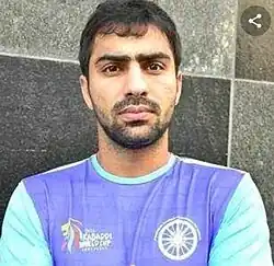 Mohit Chhillar (born 13 July 1993) is an Indian kabaddi player who currently plays for Tamil Thalaivas in the VIVO Pro Kabaddi League. He hails from Nizampur,[2] Haryana and has been one of India's best defenders for the past decade. He is a versatile defender who can complement other corner defenders and form successful partnerships. Known for his overpowering holds and swift dashes, Mohit is fifth in the league's all-time High 5s (17) chart and fourth in the Tackle Points (240) and Super Tackles (20) leaderboards.[1]