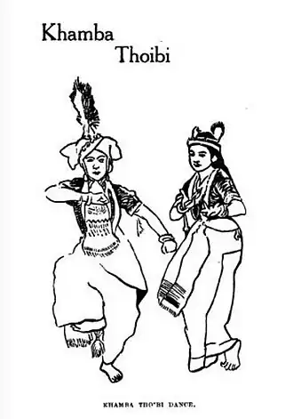The Khamba Thoibi Jagoi was first performed by Khamba and Thoibi in the premise of the Thangjing temple. It is now a popular form of folk dance of Meitei culture (Manipuri culture) in Manipur.[26][27]