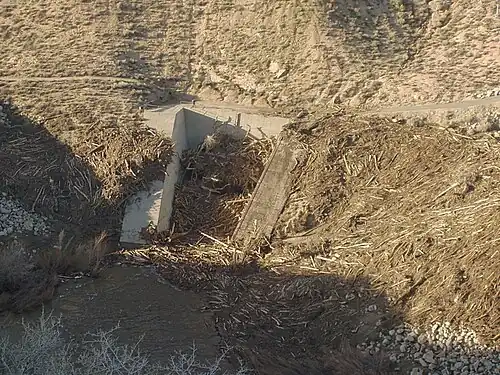 The Mojave River forks were first identified as a potential dam site in 1875, and flooding in the 1930s confirmed the need for a flood control facility along the Mojave River.[2] However, it would be 30 more years before the state endorsed such a project. The West Fork Flood Control and Reservoir Project were authorized in 1960, and the USACE created a final design by 1966. Construction began in June 1967, and the embankment was topped out in May 1971. The project was formally completed and operational by 1974.[3]