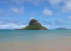 Mokoliʻi (pronounced [mokoˈliʔi]), also known as Chinaman's Hat, is a basalt islet in Kāneʻohe Bay, Hawaii. Mokoliʻi is part of Kualoa Regional Park and located 1⁄3 mile (0.54 km) offshore of Kualoa Point, Oahu. The 12.5-acre (5.1 ha) islet was at one time part of a basaltic ridge on Oahu before marine erosion separated it.[1]